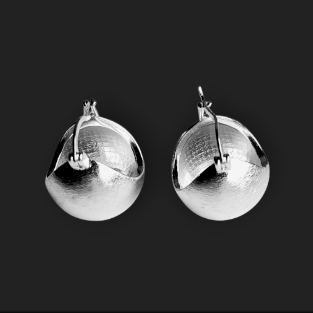 Hochwertige, kugelförmige Creolen aus poliertem Sterlingsilber, kunstvoll geschliffen. Mit ihrem robusten und gleichzeitig eleganten Design sind die Ohrringe vielseitig kombinierbar. Sie ergänzen lässige Alltagslooks perfekt und verleihen besonderen Anlässen eine stilvolle Note. Maße: 1,8 cm x 1,6 cm