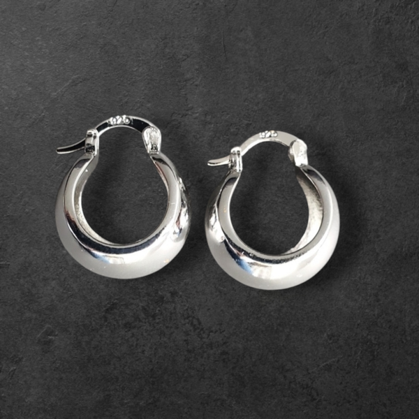 - Schlichte, glatte kreisförmige Hoop-Ohrringe im klassischen Design.