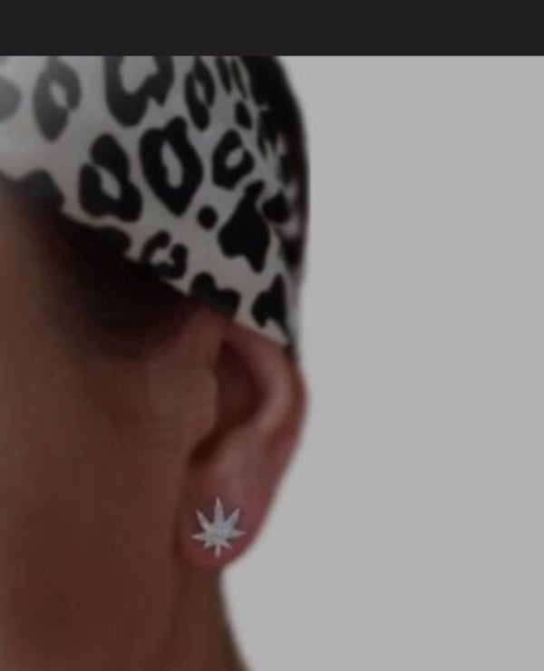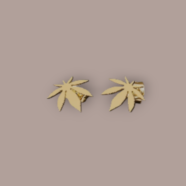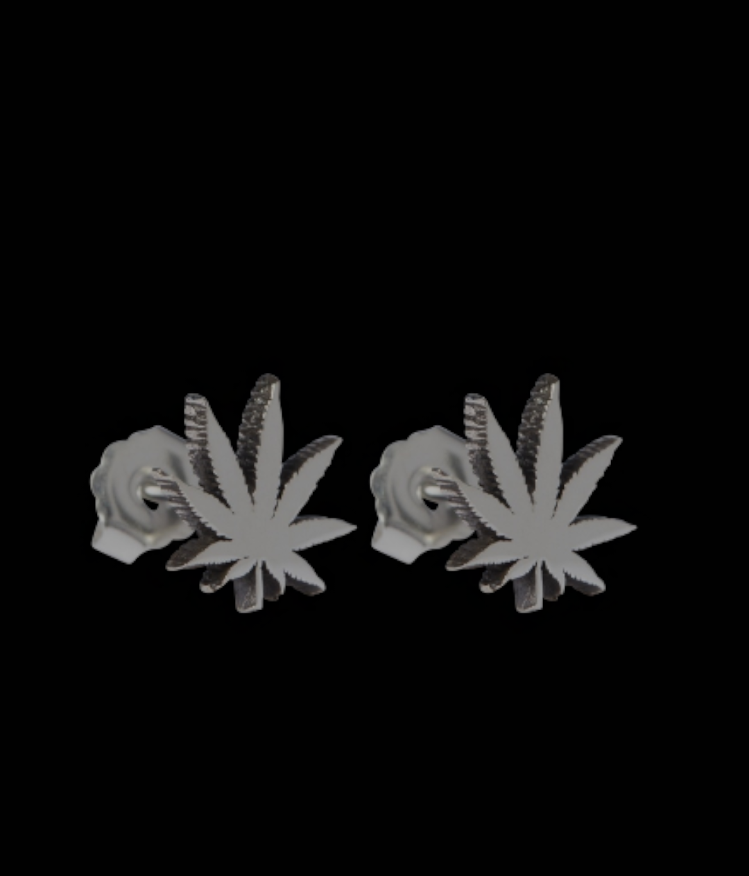 Nickelfreie Edelstahl Ohrringe mit Hanfblatt Motiv. Die Abmessung beträgt ca. 9x8 mm.