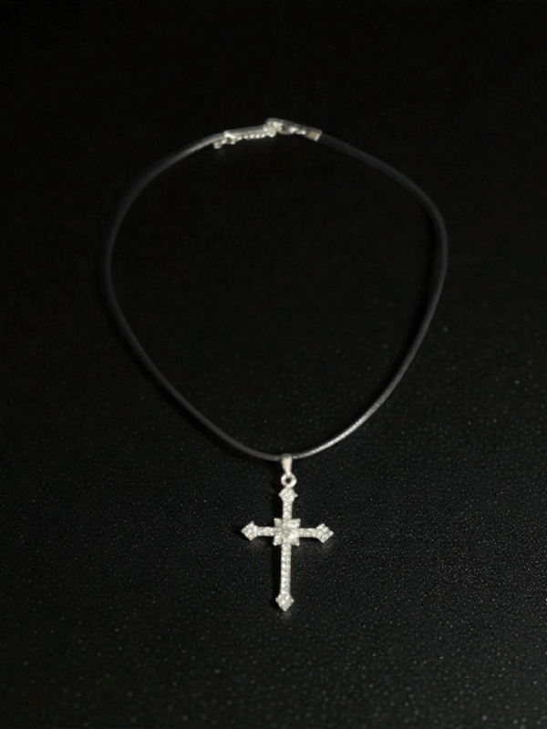 Leberband-Halskette mit einem Kreuz-Anhänger aus hochwertigem Edelstahl.andgefertigt.