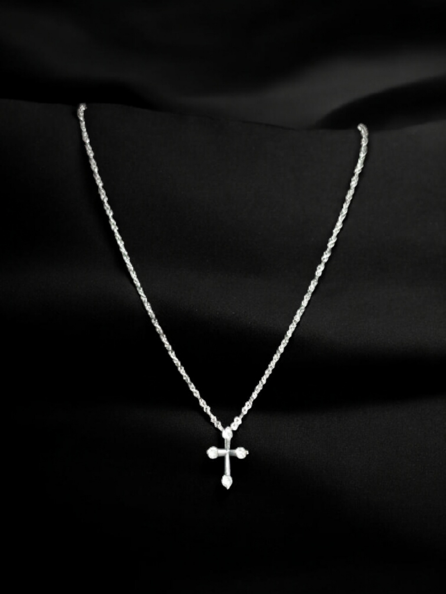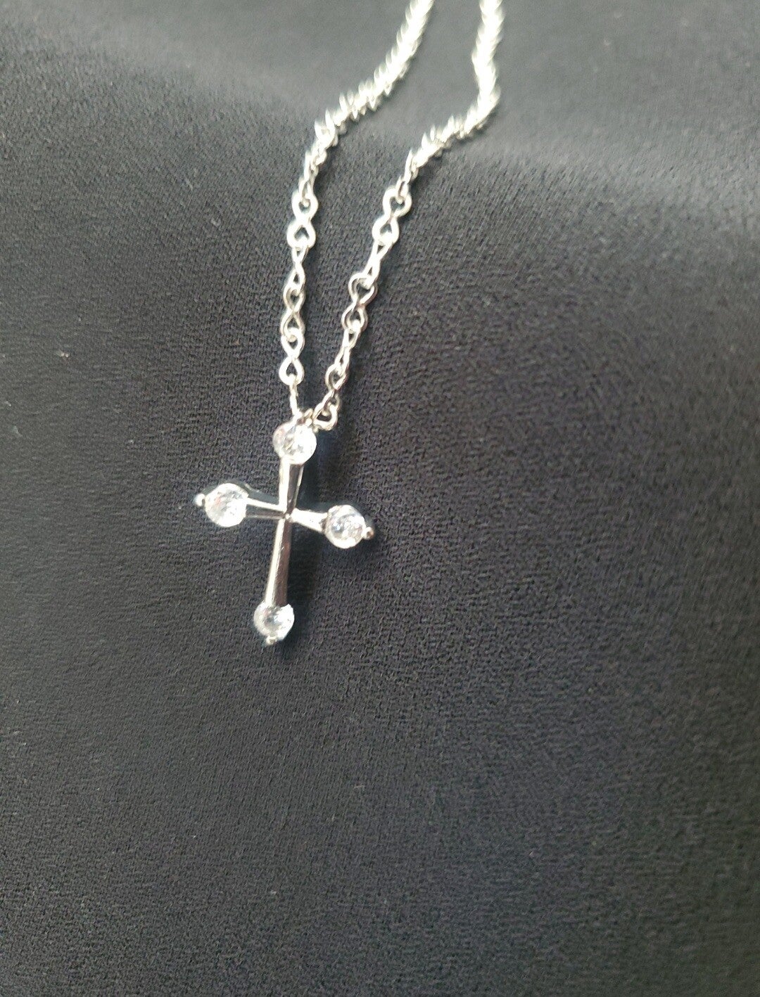 Dieser Anhänger ist ein Kreuz aus hochwertigem Sterling-Silber (925er Silber) und mit vier runden Moissanit-Steinen verziert. Perfekt geeignet für den Alltag oder besondere Anlässe.