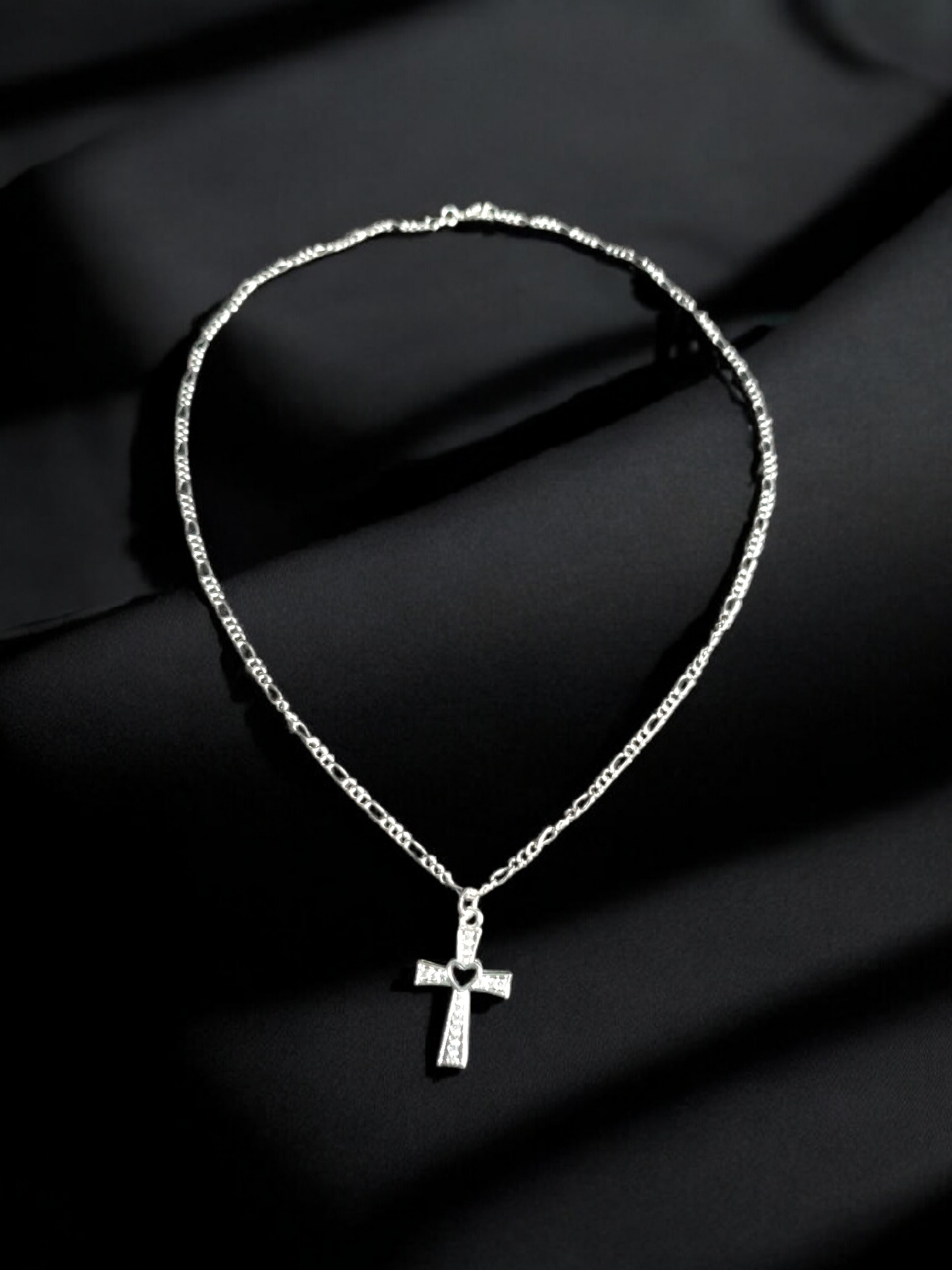 925 Sterlingsilber Latinkreuz-Herz mit Zirkonia-Kristall :Unisex