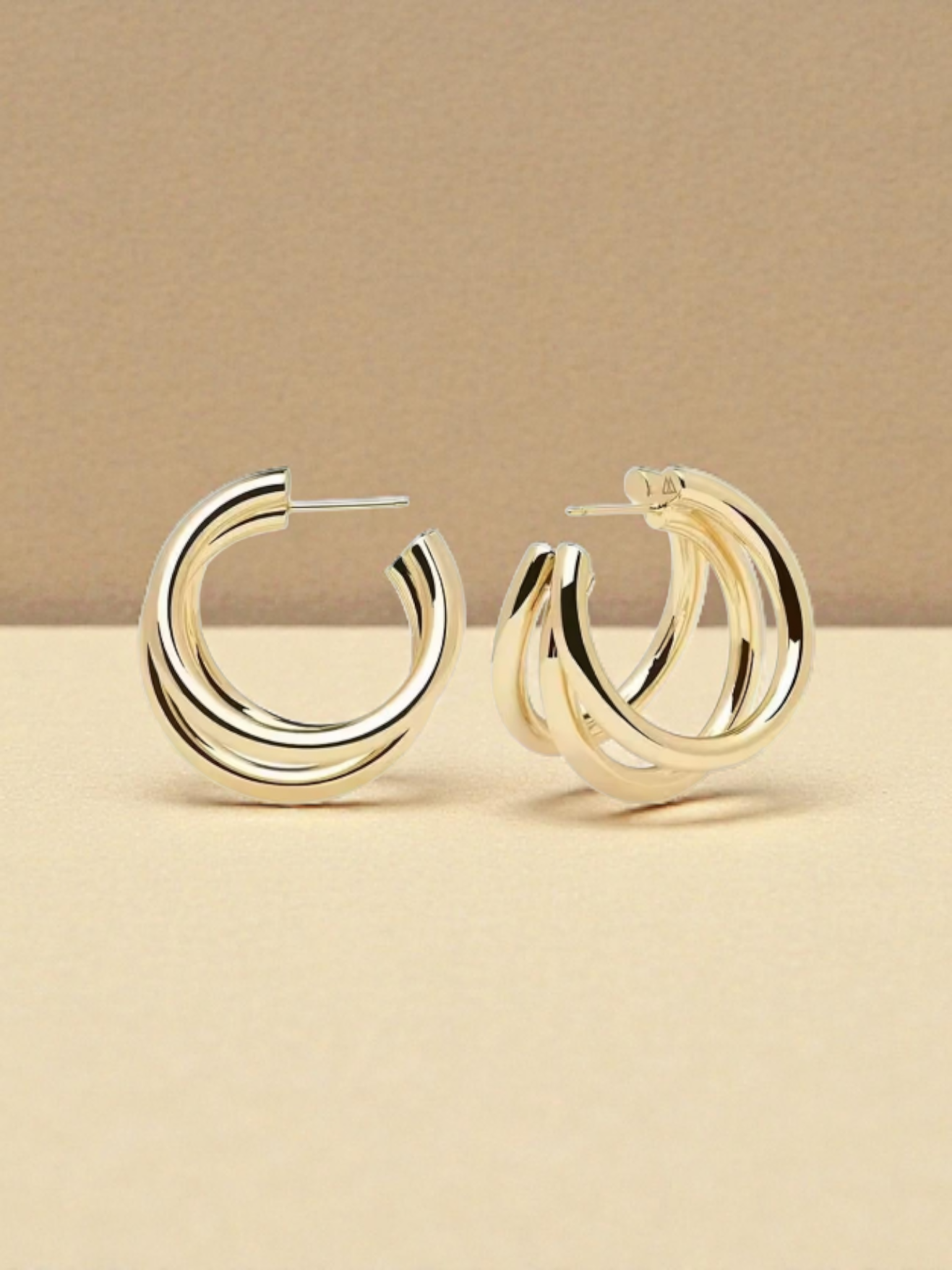 Raffinierten 3er Creolen wirken, als würden sich drei Creolen um das Ohr schmiegen. Das besondere Design macht sie zu Deinem neuen Must-have und ist ein Highlight für jedes Outfit.